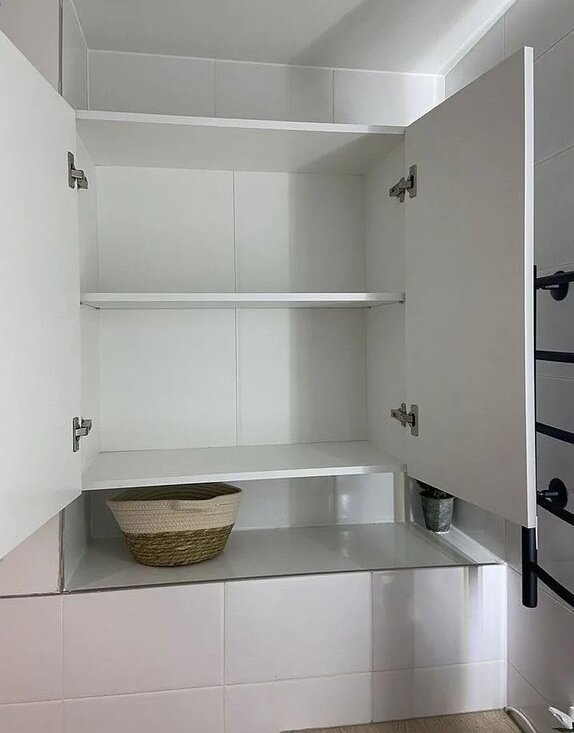 - 2 встроенных шкафа в потолок с большими нишами, полками и платяным отделом.