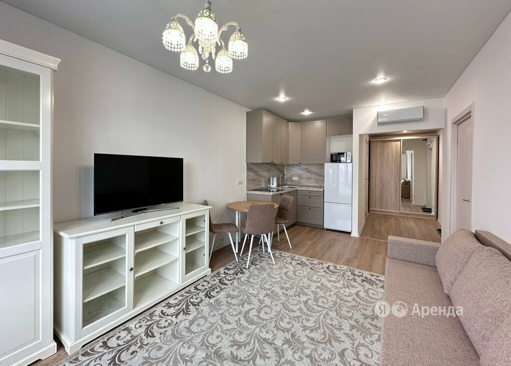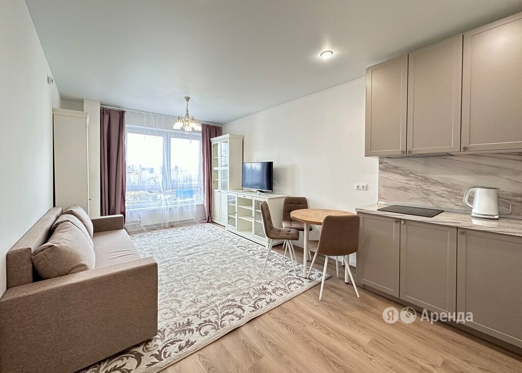 Сдаётся 1-комнатная квартира площадью 42 кв.м. с евроремонтом на 18 этаже в 33-этажном доме на срок от 11 месяцев. Из техники есть:
