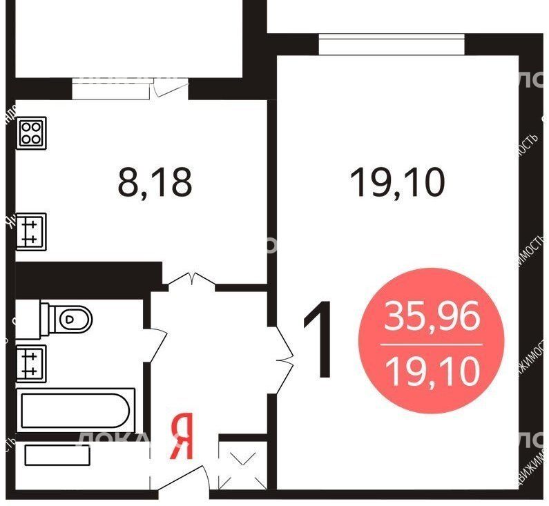 1-комнатная квартира: Москва, Белозерская улица, 5 (35.96 м²)