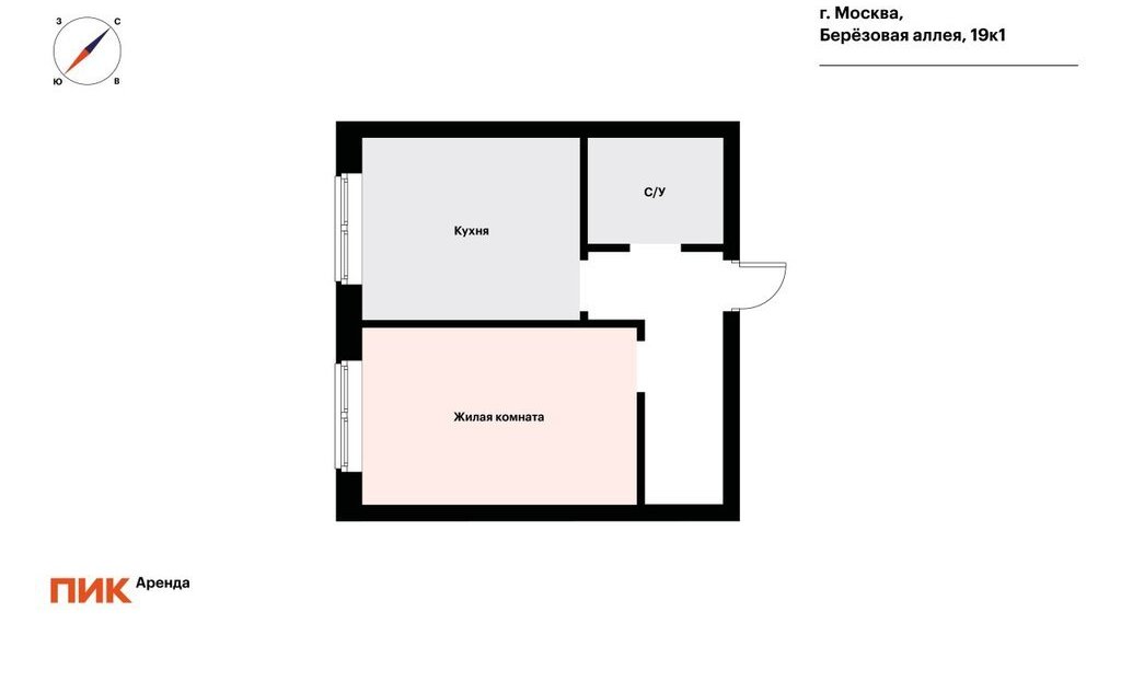 1-комнатная квартира: Москва, Берёзовая аллея, 19к1 (32 м²)