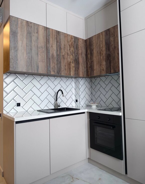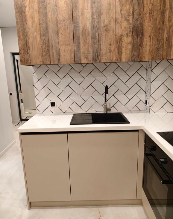 Красивая встроенная кухня, выполненная на заказ, полностью оснащена всей необходимой современной бытовой техникой! Встроенный холодильник обладает полной современной системой No Frost.