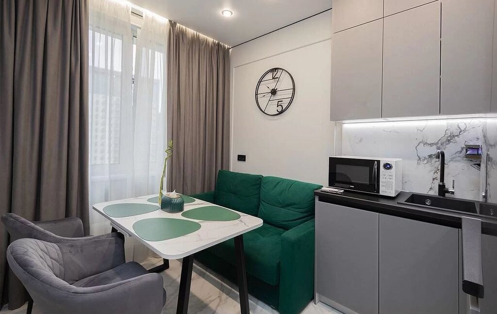 Двуспальная кровать 200*180 и диван со спальным местом 160х200 на кухне. Светонепроницаемые шторы. Высокоскоростной WI-FI (200 МБ/сек). В спальне и кухне ЖК телевизоры с диагональю 55 дюймов и функцией SМАRТ ТV. Отдельная гардеробная. Кофе-машина капсульная Nеsрrеssо, фен, утюг, гигиенические принадлежности, тапочки.