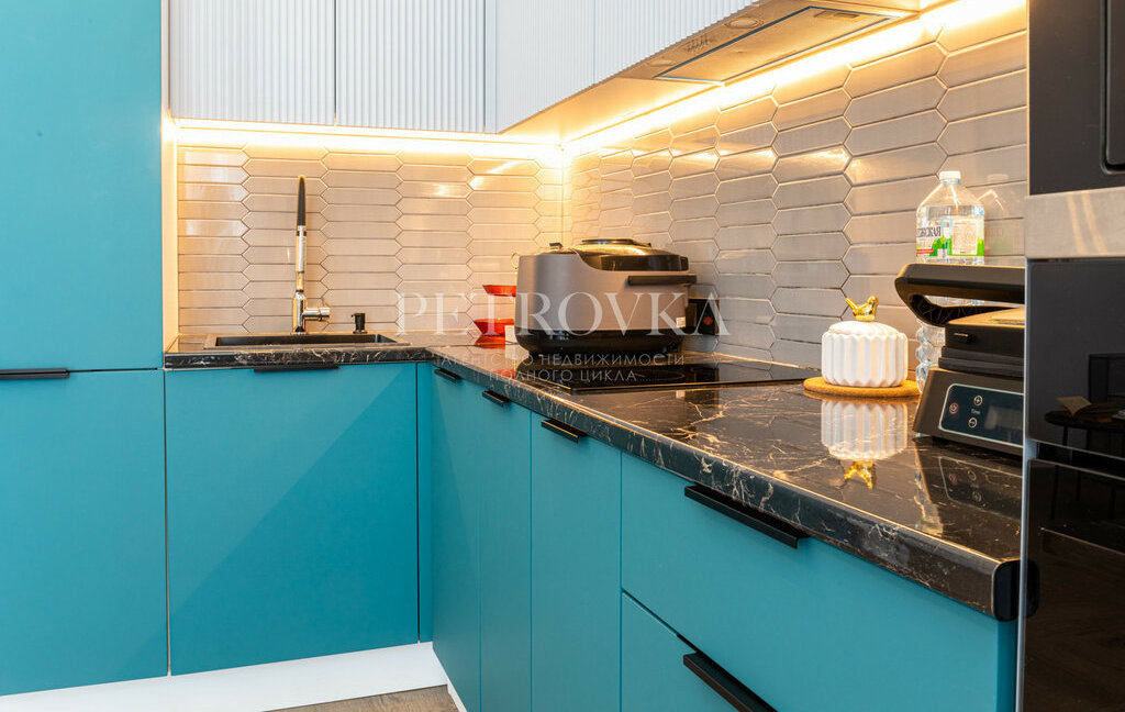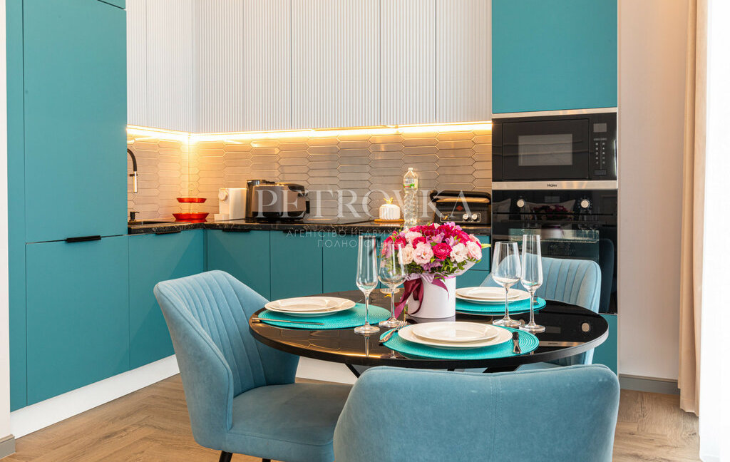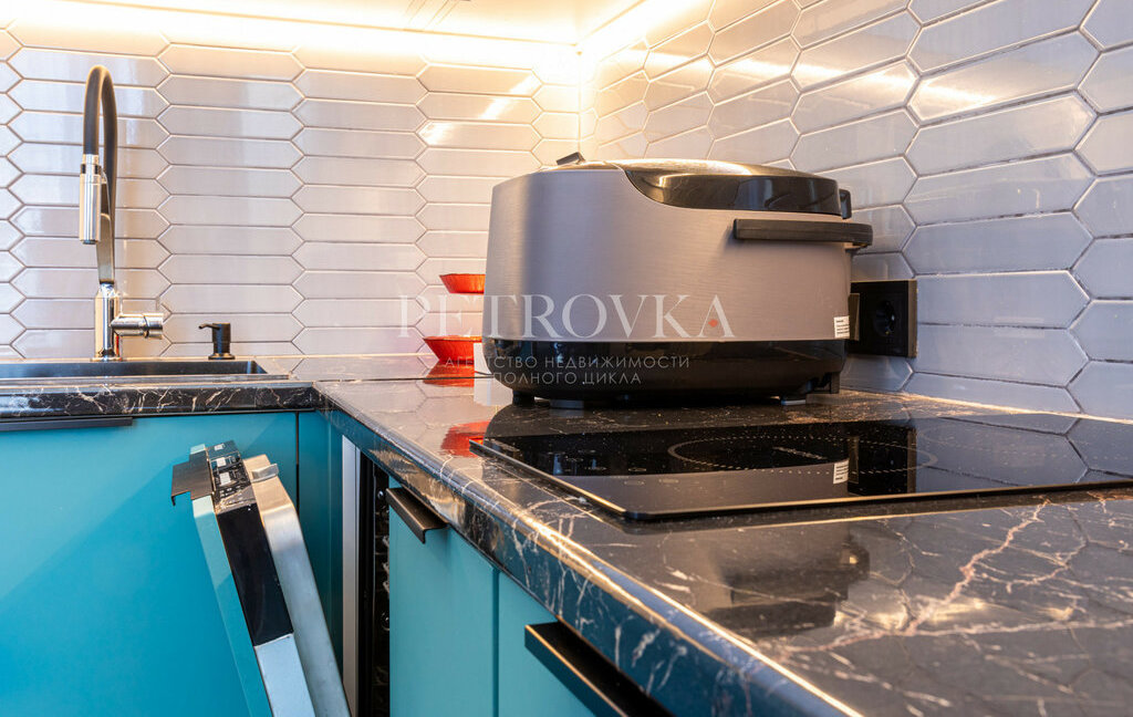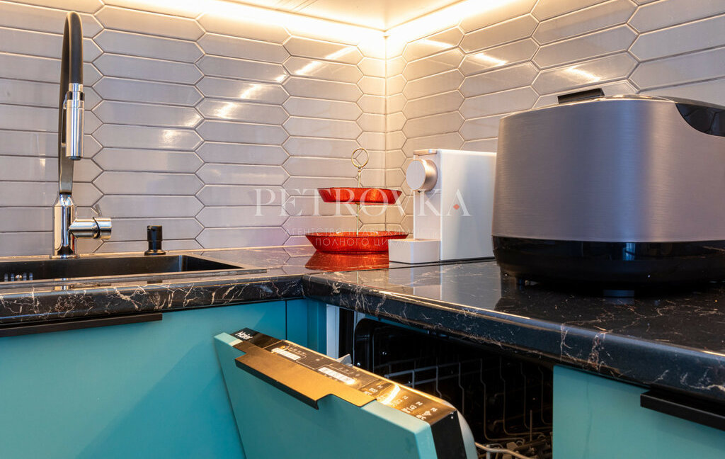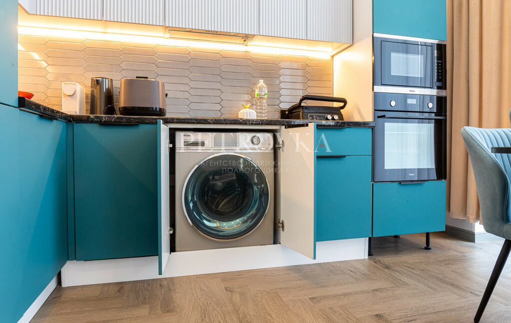 — встроенная кухня со всей техникой (посудомоечная, стиральная машина, варочная панель, кондиционер)