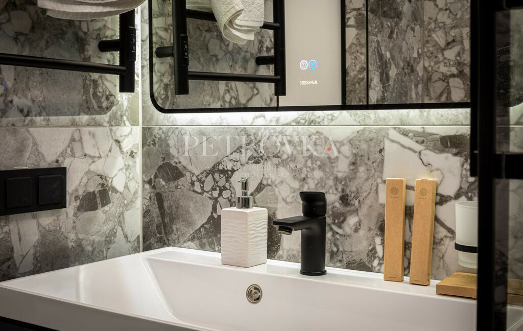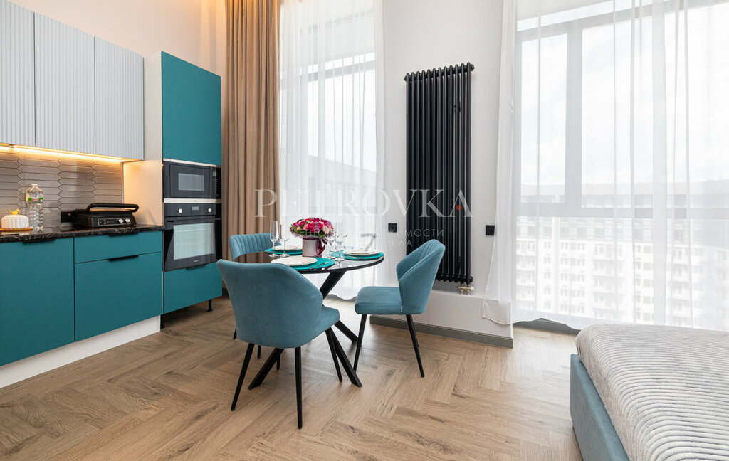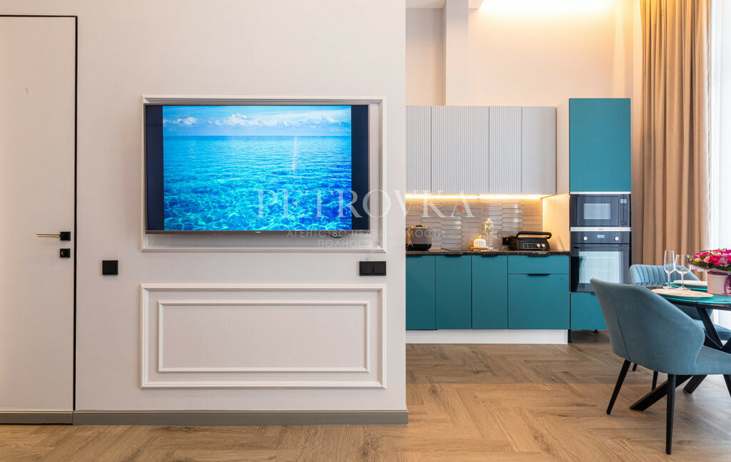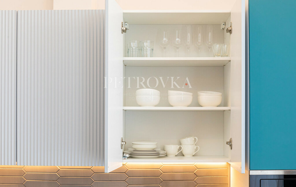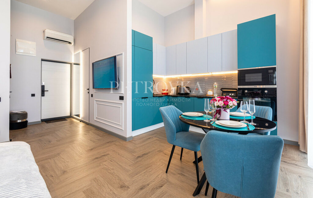 — встроенная кухня со всей техникой (посудомоечная, стиральная машина, варочная панель, кондиционер)