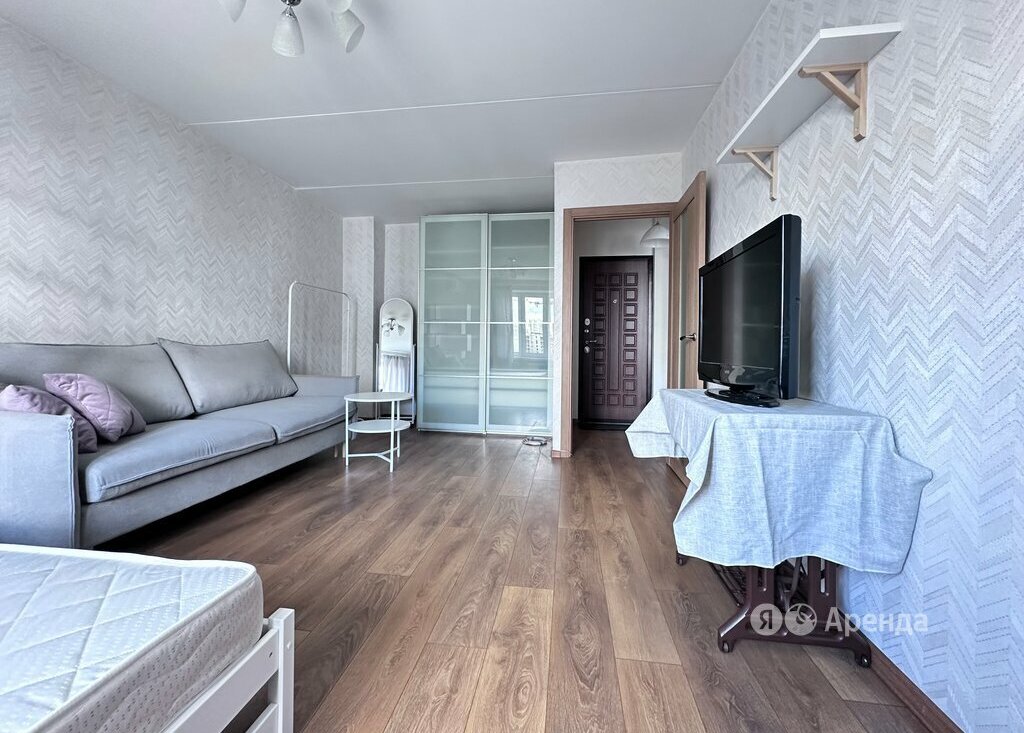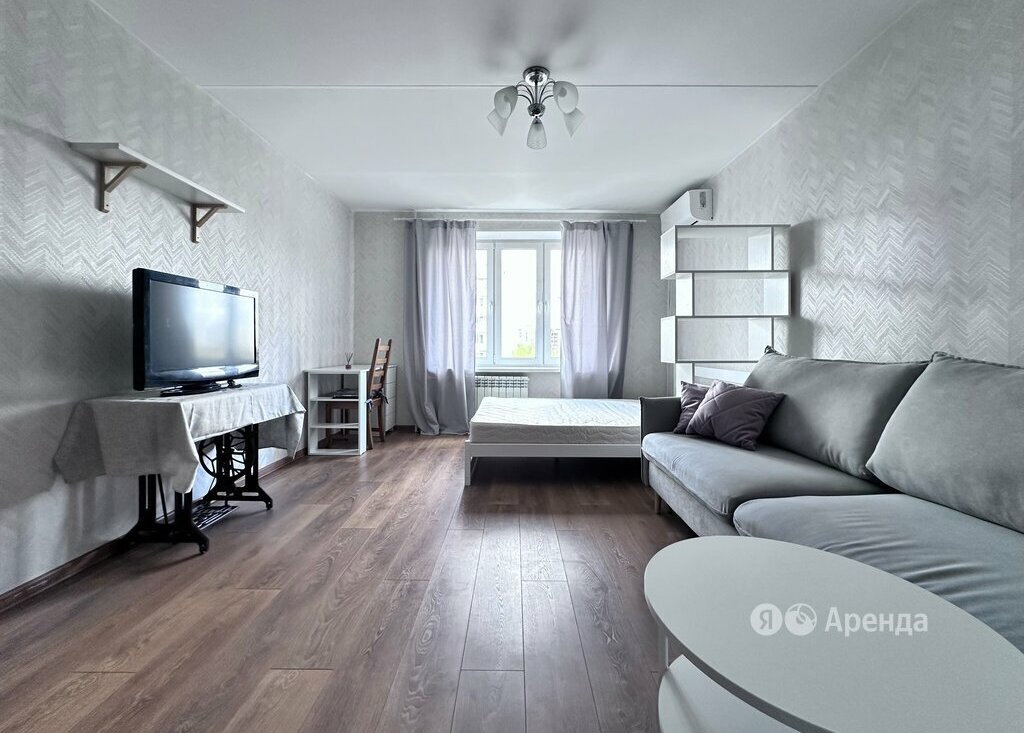 Сдаётся 1-комнатная квартира площадью 35 кв.м. с косметическим ремонтом на 9 этаже в 12-этажном доме на срок от 11 месяцев. Из техники есть: