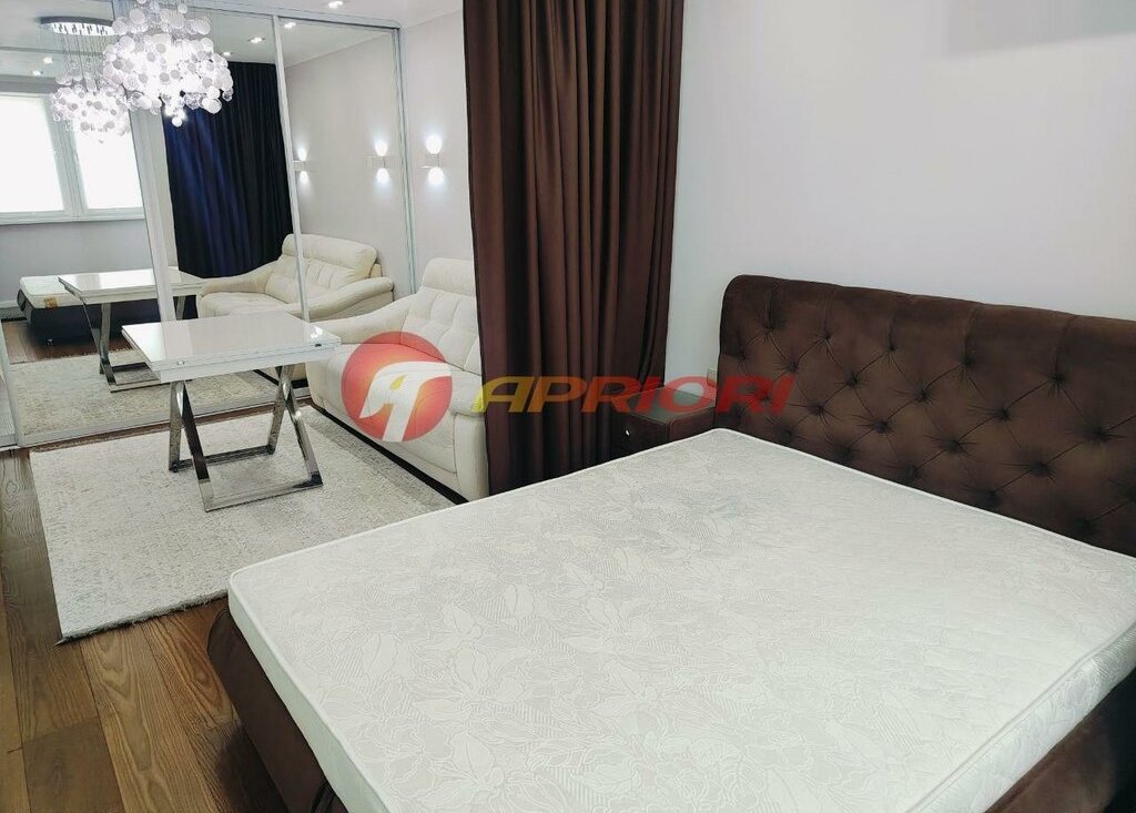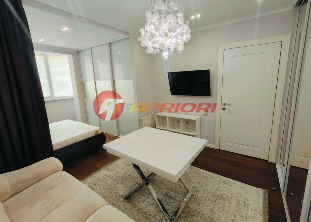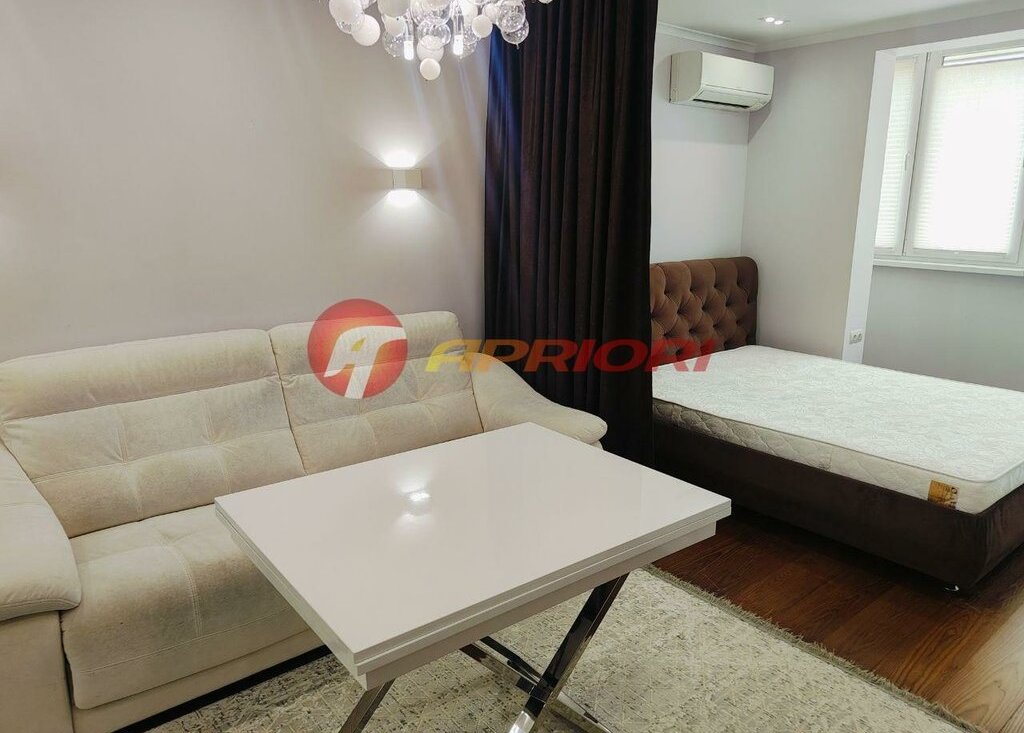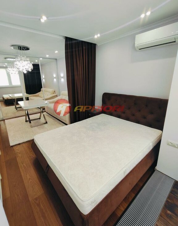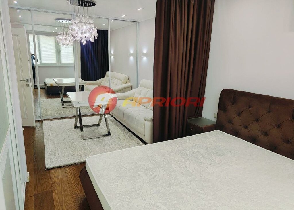 Сдаю стильную, комфортную квартиру с дизайнерским ремонтом. Просторная комната поделена на две функциональные зоны — для отдыха и работы, что создаёт ощущение простора и уюта одновременно.