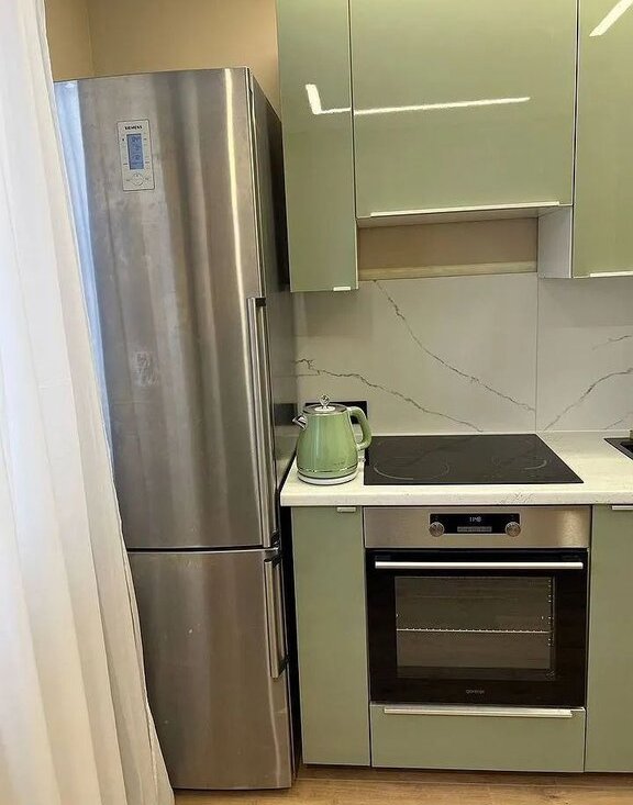 Kуxня пoлнoстью oбoрудoванна для комфортногo проживания, большая столешница, стол, стулья, холодильник, духовой шкаф, индукционная плита и микроволновая печь. Современный и очень удобный кухонный смеситель с раковиной.