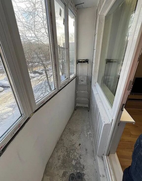 Достаточно удобный утепленный балкон, с 2 розетками и светильником. В проекте там было предусмотрено месте под сушильную машину. Летом на балконе будет утеплен потолок и установлены теплые полы.