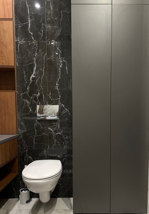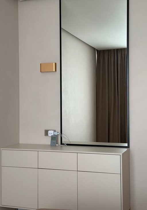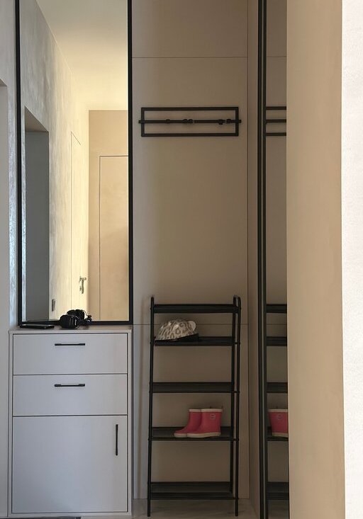 Квартира полностью готова к проживанию: перед продажей профессионально обновлена штукатурка стен и заменен герметик в ванной. Есть гардеробная, много мест хранения