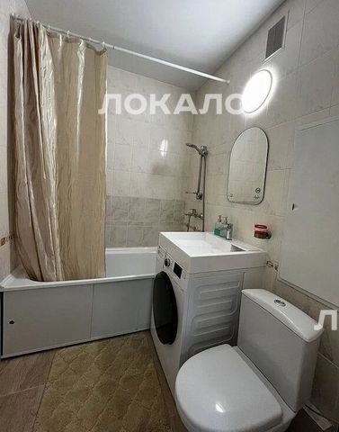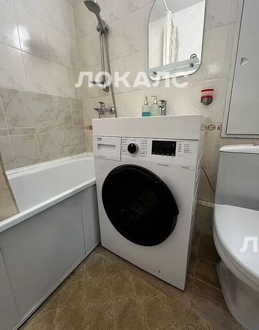 Санузел совмещенный: ванна, туалет, стиральная машина.