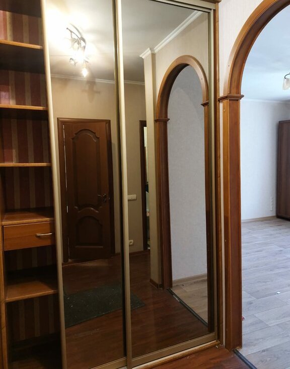 Из мебели шкаф платяной,шкаф- пенал,в прихожей встроенный шкаф.Нет спального места.У нанимателя есть возможность заехать со своим.