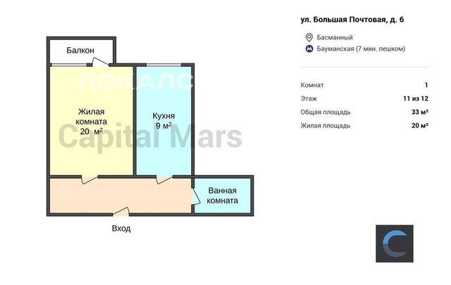 1-комнатная квартира: Москва, Большая Почтовая улица, 6 (34 м²)