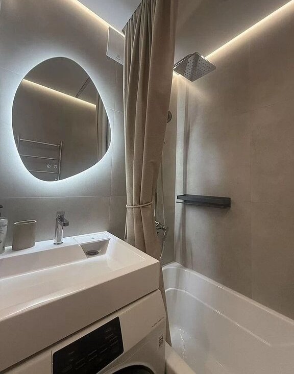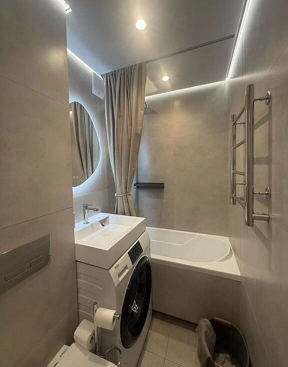 - Сантехника и комфорт: стиральная машина Наiеr, электрический полотенцесушитель, вентиляция в ванной.