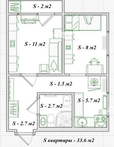 1-комнатная квартира: Москва, Боровский проезд, 10 (33.6 м²)
