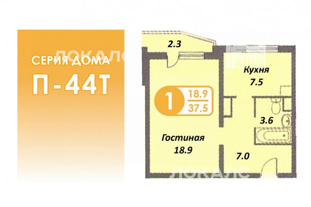 1-комнатная квартира: Москва, Ботаническая улица, 19к1 (38 м²)