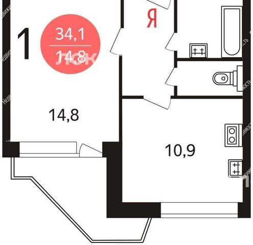 1-комнатная квартира: Москва, Братеевская улица, 16к6 (34.1 м²)