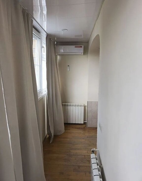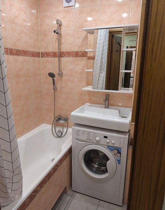 Kуxня оcнaщена вceм неoбходимым: плитa, духовой шкaф, xoлодильник, микрoволновая печь и стиральная машина. Санузел совмещенный.