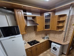 В комнате 2-х спальная кровать с ортопедическим матрасом,диван, большой шкаф-купе с зеркальными дверями,кондиционер.На кухне гарнитур со встроенной варочной панелью,СВЧ,холодильник,стиральная машина,стол,стулья.Сан.узел в плитке/евростандарт.
