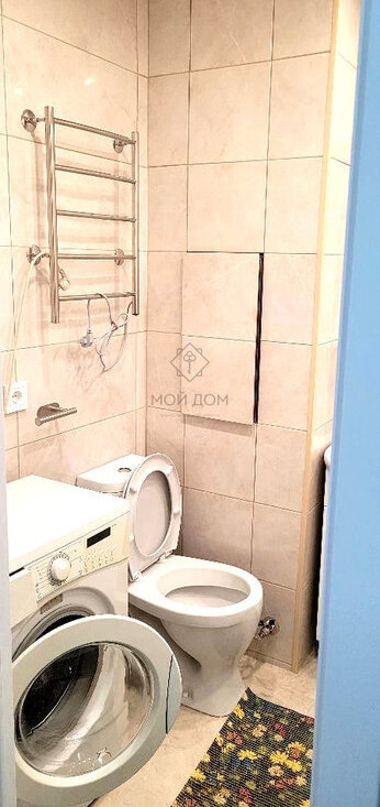 Совмещенный санузел. В ванной комнате есть стиральная машина. Комната-гостиная ,застекленный балкон.