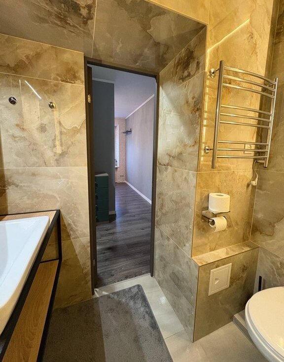 На этаже всего две квартиры, отличная звукоизоляция позволит наслаждаться тишиной и уединением. Спокойные и дружелюбные соседи.