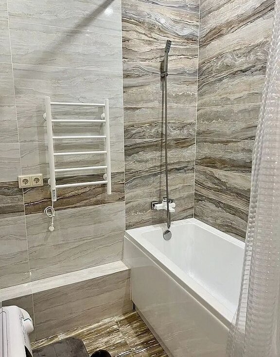 - Санузел: ванная, унитаз, стиральная машина, раковина, электрический полотенцесушитель.
