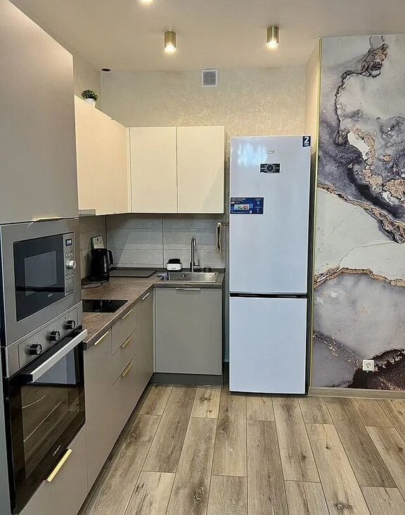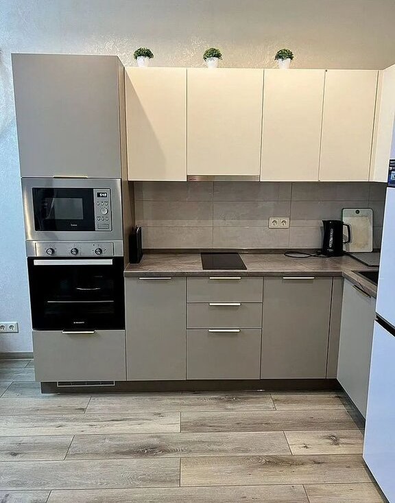 - Кухня гостиная: кухонный гарнитур с немецкими фасадами, холодильник, кондиционер с ионизацией, встроенная техника: варочная панель, посудомойка, духовой шкаф, микроволновка, вытяжка, полный комплект посуды в т.ч и для приготовления пищи; стол с 3-мя креслами; раскладывающиеся диван с ортопедическим матрасом.