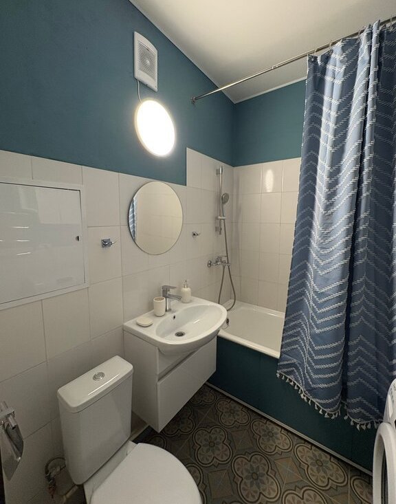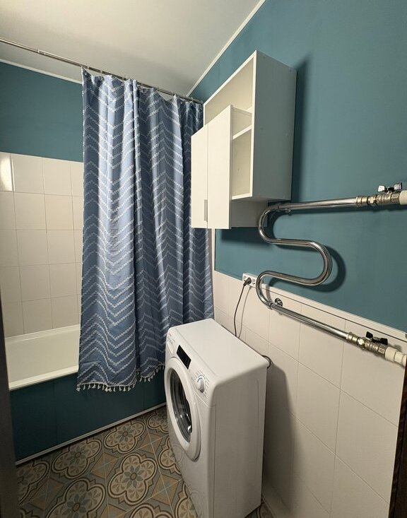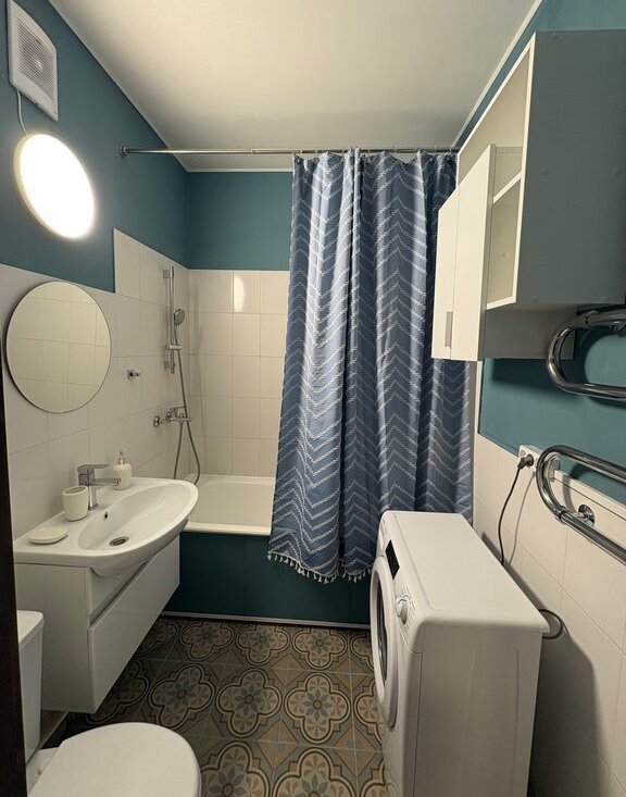 Просторная ванная, косметический ремонт в январе 2025 года, сантехника и стиральная машина новые.