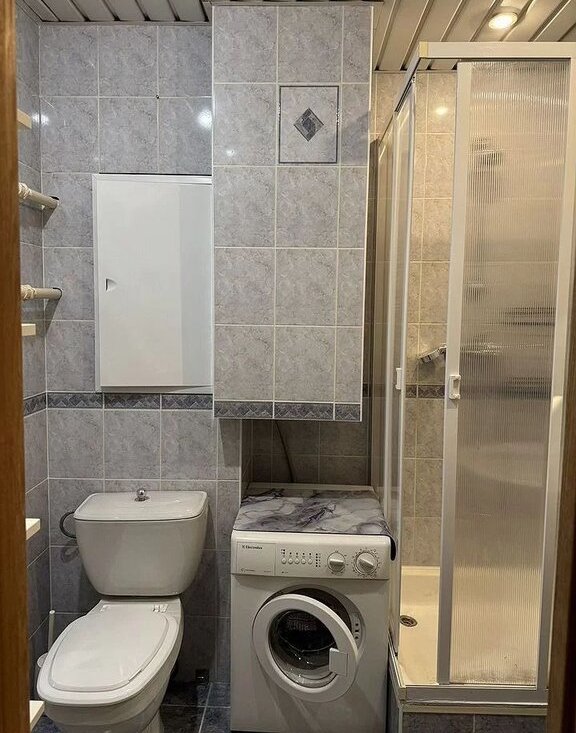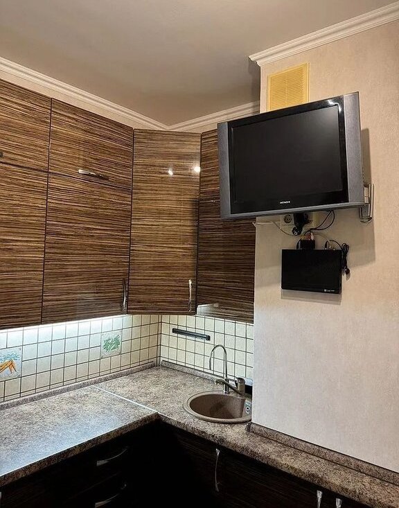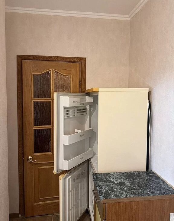 В квартире сделан косметический ремонт. Окна выходят во двор, что обеспечивает тишину и спокойствие. Квартира полностью меблирована: есть мебель на кухне и в комнате. Из техники установлены кондиционер, холодильник, телевизор и стиральная машина. В санузле установлена душевая кабина. Также имеется одна лоджия, где можно наслаждаться утренним кофе или вечерним отдыхом. В подъезде есть как пассажирский, так и грузовой лифты, а также мусоропровод.