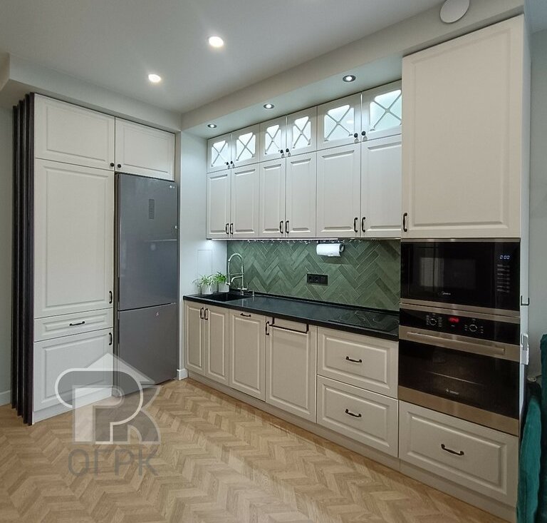 Тщательно продуманное пространство для комфортной жизни: просторная кухня-гостиная площадью 22 кв. м, спальня 12 кв. м., две отдельные рабочие зоны в разных комнатах, много мест хранения. Окна выходят во двор.