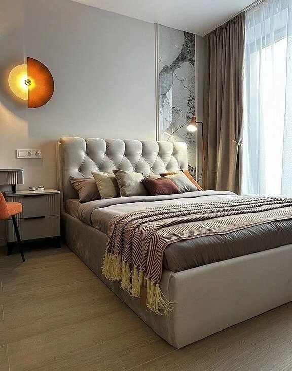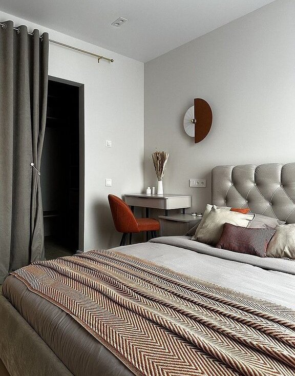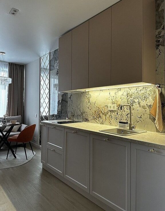 Кваpтиpa площaдью 36 м² включaет одну комнaту-спальню, кухню гостиную и совмещённый санузел. Просторная кухня 12 м² оснащена современной техникой, включая холодильник и посудомоечную машину. В зоне гостиной установлен раскладывающийся диван и обеденная зона.
