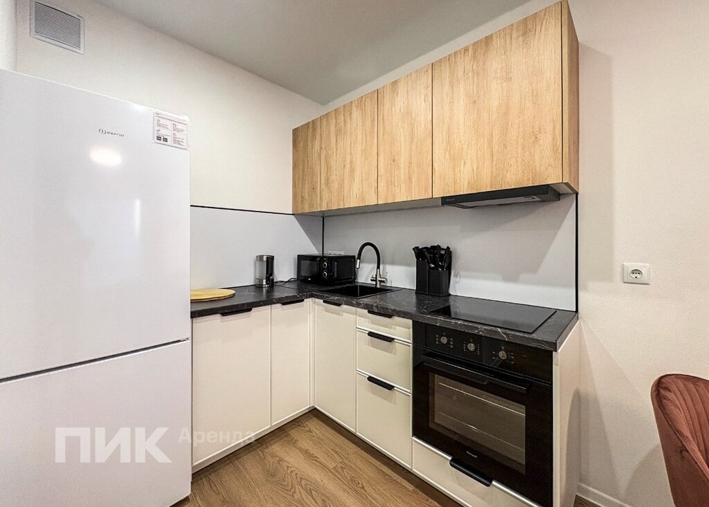 Квартира оборудована кухонным гарнитуром, мебелью и бытовой техникой: