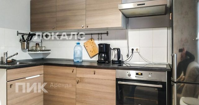 Квартира оснащена кухонным гарнитуром, всей необходимой мебелью и бытовой техникой: