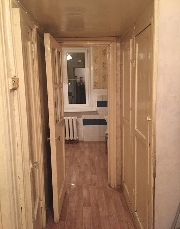 Установлены пластиковые окна, новые алюминиевые радиаторы ( на фото до установки). В квартире очень тепло. Требуется ремонт.