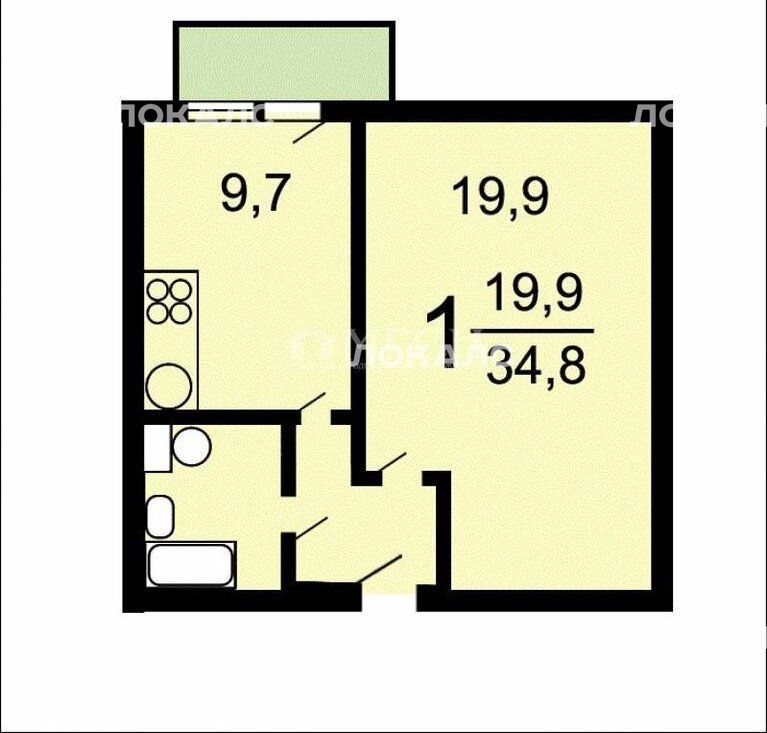 1-комнатная квартира: Москва, Федеративный проспект, 34к2 (34.8 м²)