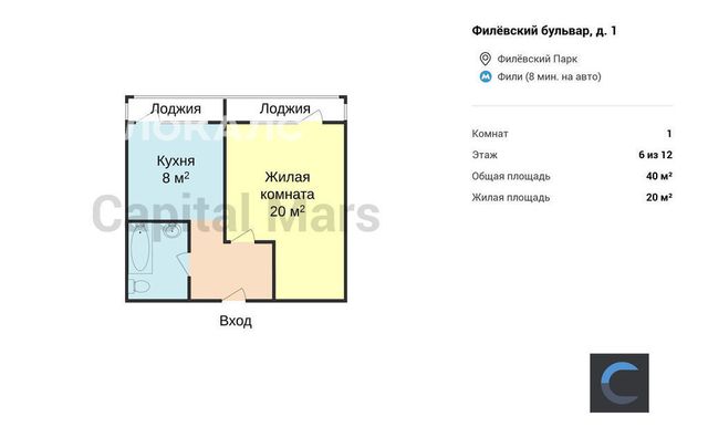 1-комнатная квартира: Москва, Филёвский бульвар, 1 (40 м²)