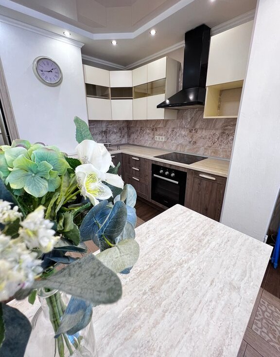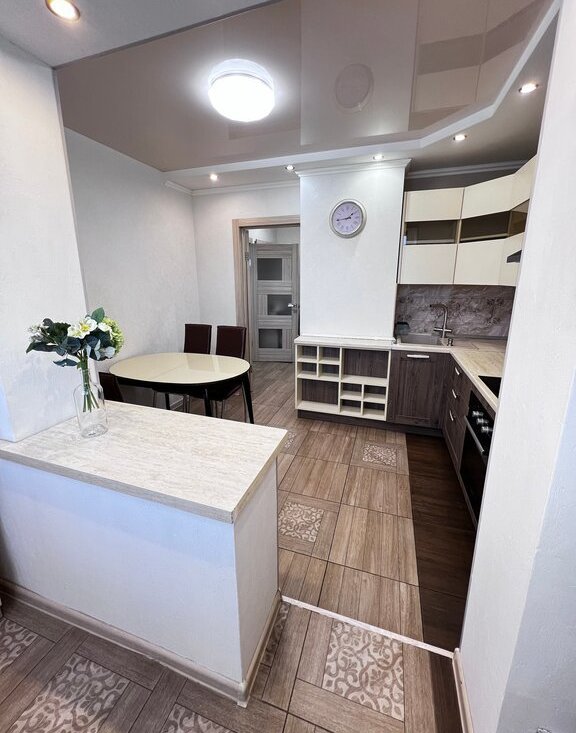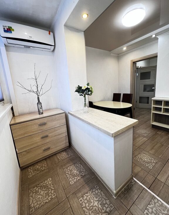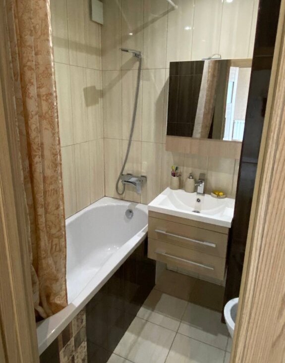 Сдается уютная, светлая квартира на длительный срок. Полностью меблированная, в зале большой раскладной диван (имеется матрац средней жестокости на диван в разложенном виде), вместительный, зеркальный шкаф. Кухня соединена с лоджией (теплые полы), кондиционер.