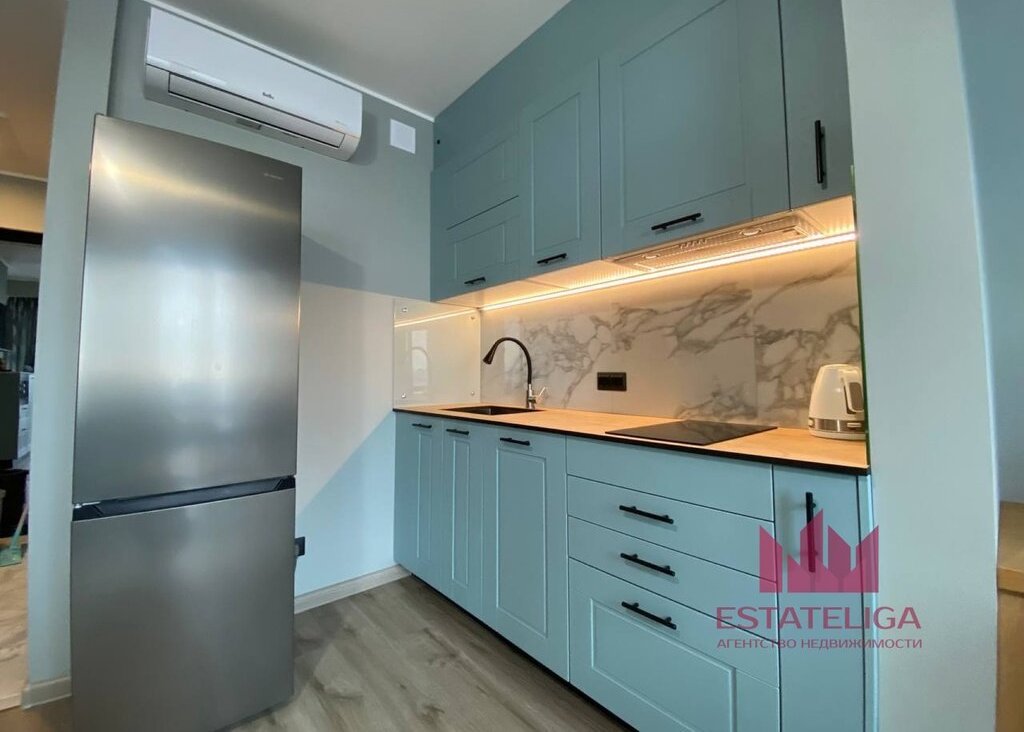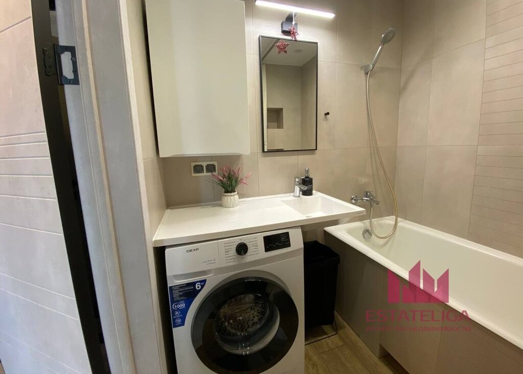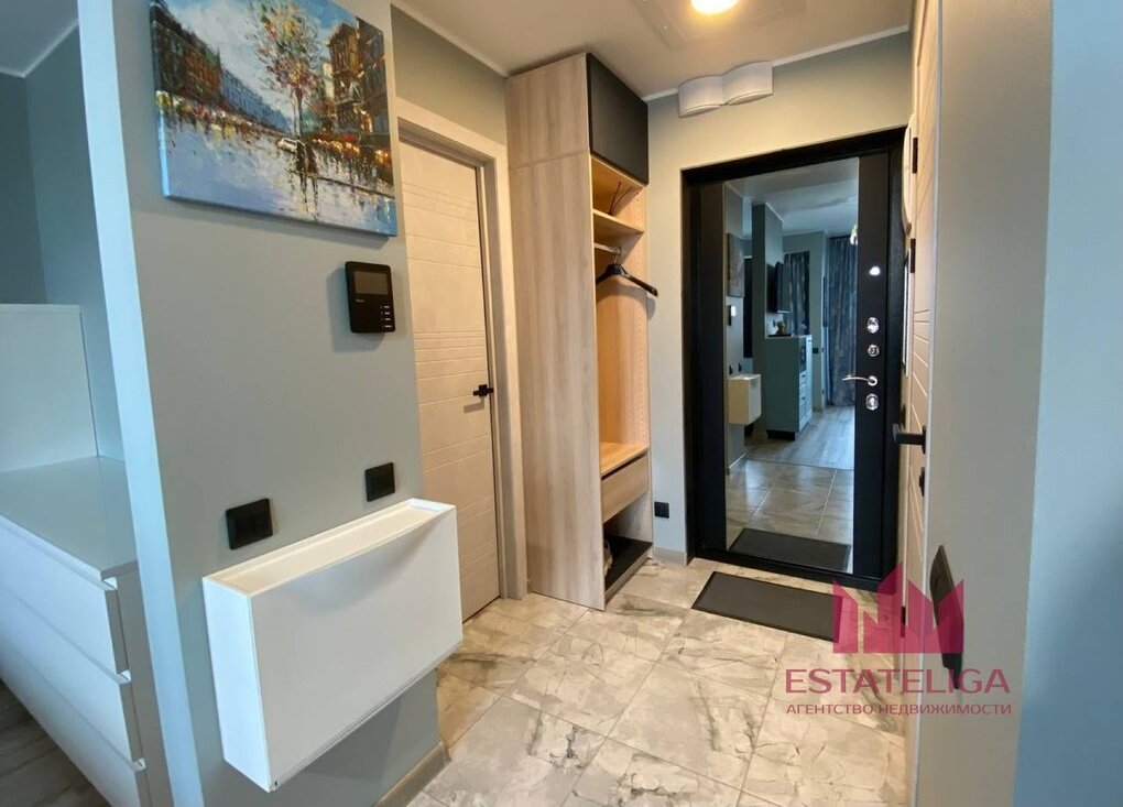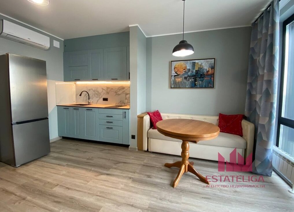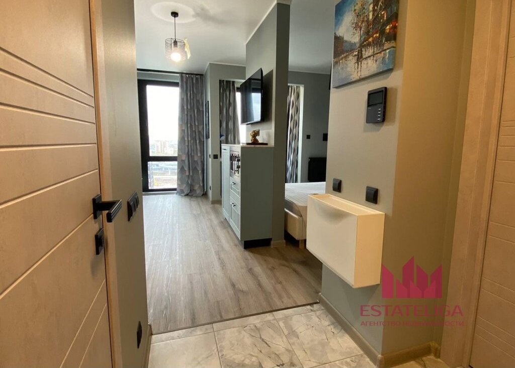 Представляем к долгосрочной аренде современную квартиру площадью 39 квадратных метров на 21 этаже 32-этажного монолитного дома 2023 года постройки. Это не просто квартира, а готовое пространство для жизни, где каждая деталь продумана для вашего комфорта. Дизайнерский ремонт, выполненный со вкусом, сразу создает ощущение статусности и уюта. Высокие потолки 2,7 метра и панорамное остекление с видом на улицу наполняют помещение светом и воздухом, а также открывают захватывающий вид на город с высоты птичьего полета.