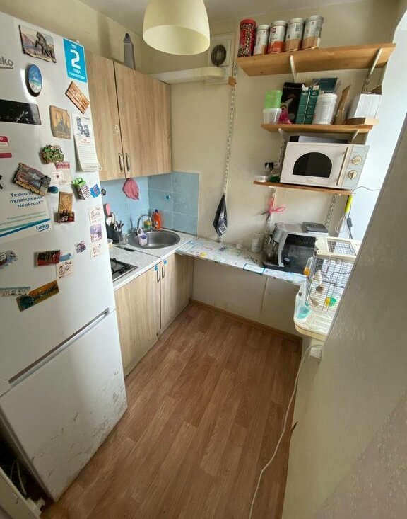 Из мебели остается шкаф-купе Икеа, кровать Орматек, холодильник Beko.