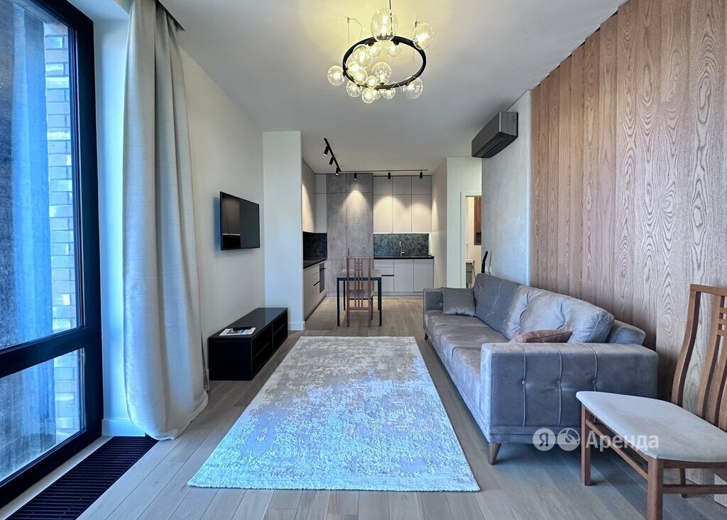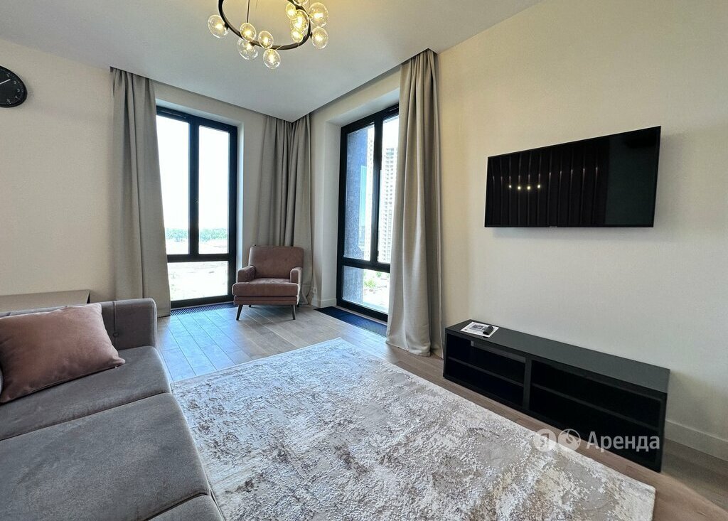 Сдаётся 1-комнатная квартира площадью 50 кв.м. с евроремонтом на 7 этаже в 44-этажном доме на срок от 11 месяцев. Из техники есть: