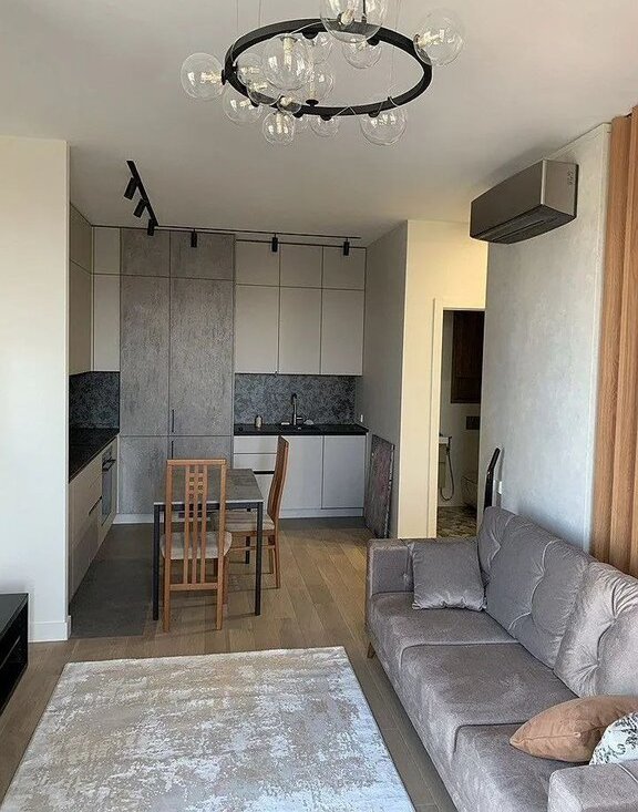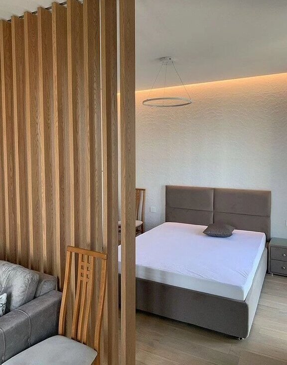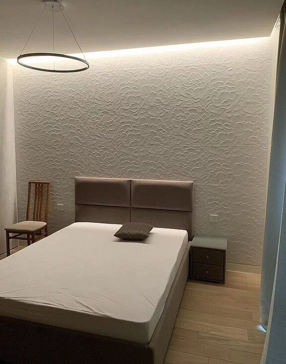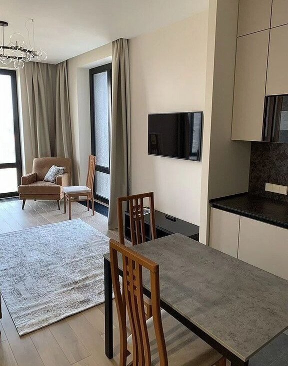 В квартире выполнен дизайнерский ремонт, создающий уютную атмосферу. Просторная кухня площадью 10 м² оснащена необходимой бытовой техникой, включая телевизор. В комнате установлены удобные спальные места.