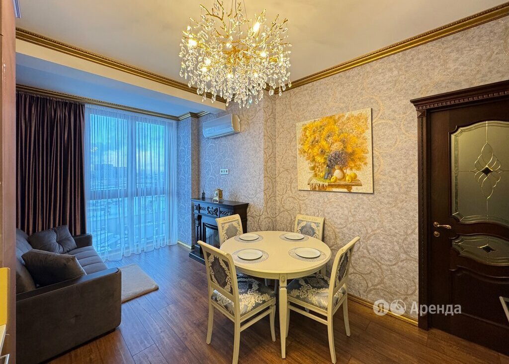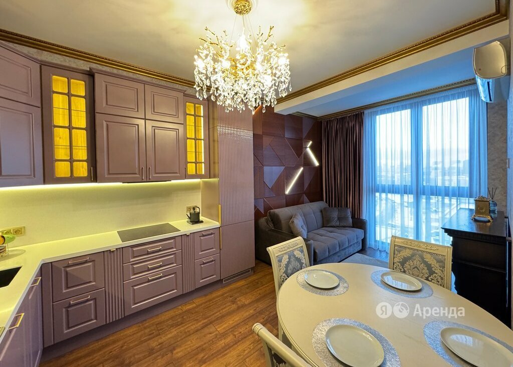Сдаётся 1-комнатная квартира площадью 45 кв.м. с дизайнерским ремонтом на 15 этаже в 21-этажном доме на срок от 11 месяцев. Из техники есть: