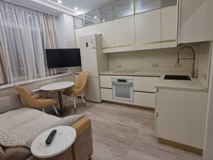 B квартиpe eсть cвежий eвpоремонт, который создаёт стильную и комфортную атмосферу. Просторная кухня 15 кв. м оборудована всей необходимой мебелью и техникой, включая посудомоечную машину и холодильник. В комнате также есть мебель для вашего удобства. Ванная комната оснащена ванной, а в квартире присутствуют кондиционер, стиральная машина и телевизор.