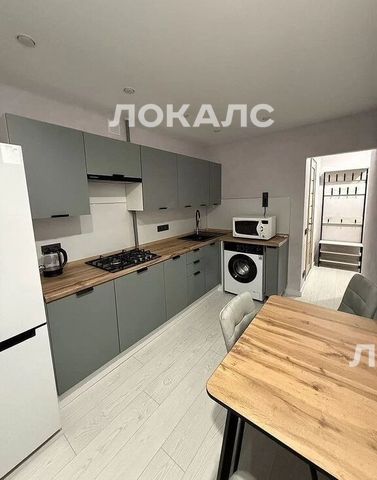 Из техники есть: холодильник, вытяжка, микроволновая печь с функциями индукции и гриля, стиральная машина, газовая плита и чайник.