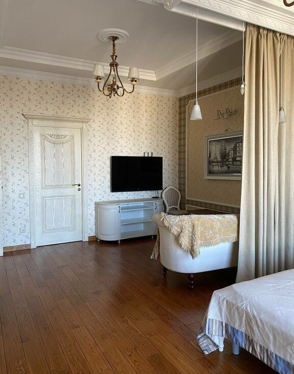 В квартире сделан качественные ремонт на полу деревянный паркет из массива. Имеется гардеробная комната. Зона кузни оснащена современной встроенной бытовой техникой. Встроенная в колонну духовка и микроволновая печь встроенный холодильник и мощная вытяжка над плитой. За дополнительную плату может быть предложено большое машиноместо на две машины. Сан узел совмещенный оснащен ванной, гигиеническим душем.