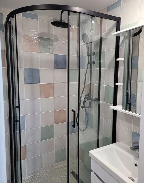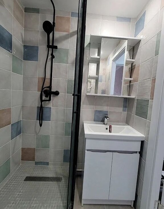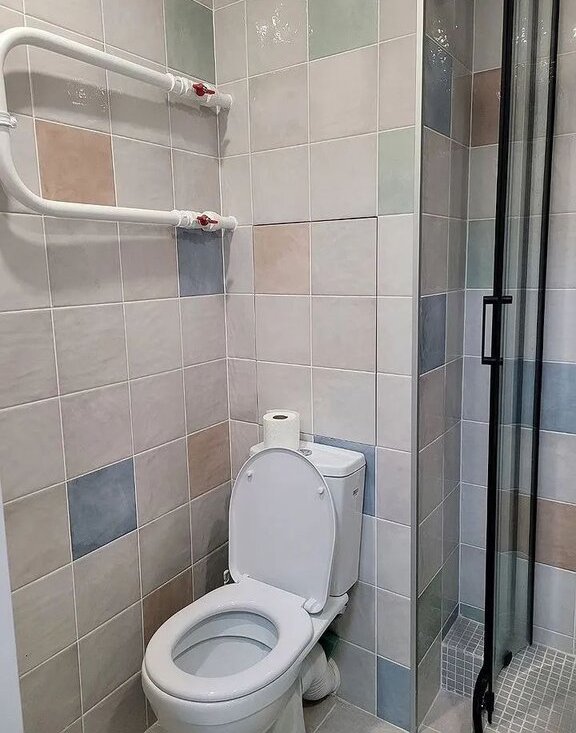 Санузел совмещенный, оформлен современной плиткой, оснащен душевой кабиной. В подъезде установлены два пассажирских лифта.