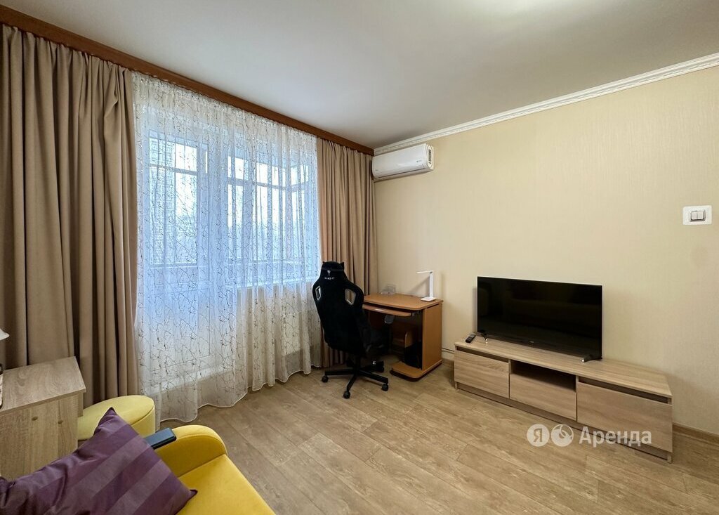 Сдаётся 1-комнатная квартира площадью 38 кв.м. с косметическим ремонтом на 5 этаже в 16-этажном доме на срок от 11 месяцев. Из техники есть: