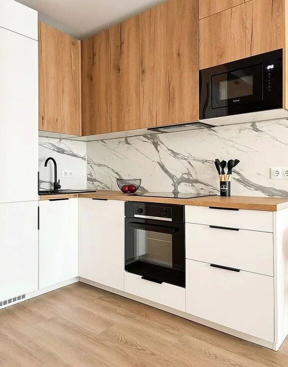 Из техники установлены: стиральная машина, посудомоечная машина, холодильник, духовка, индукционная варочная панель, вытяжка, микроволновка, телевизор. Для удобства также есть утюг, пылесос, наборы посуды, сковородки и кастрюли, подходящие для индукционной плиты.