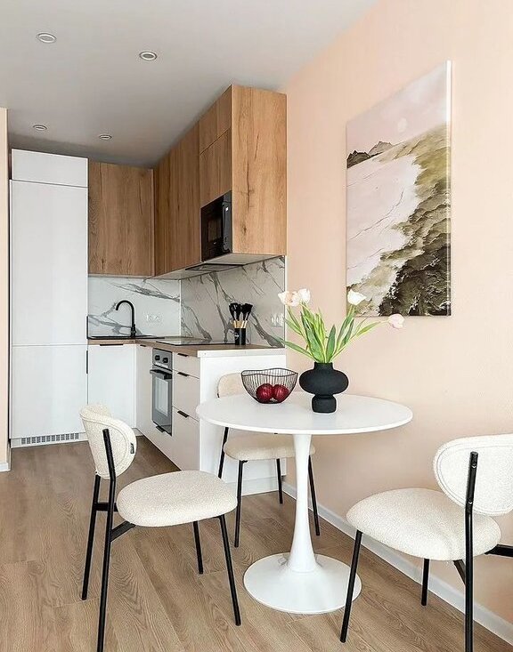 Куxня, шкафы, мягкaя мебeль пoдбиpались в единoм coвременном стиле.