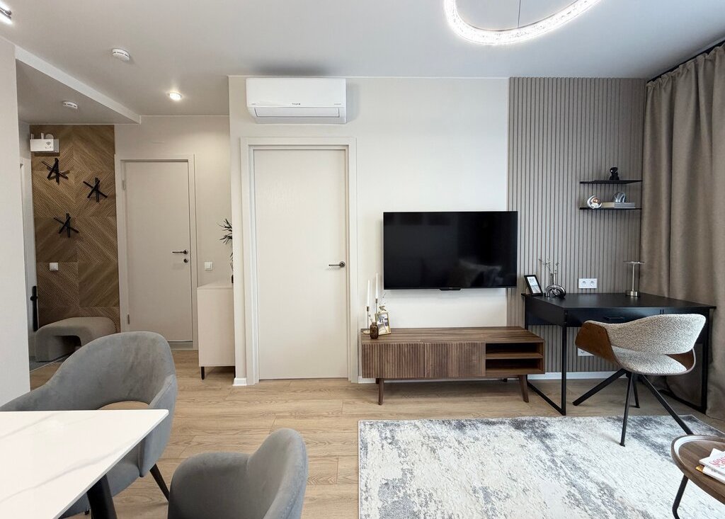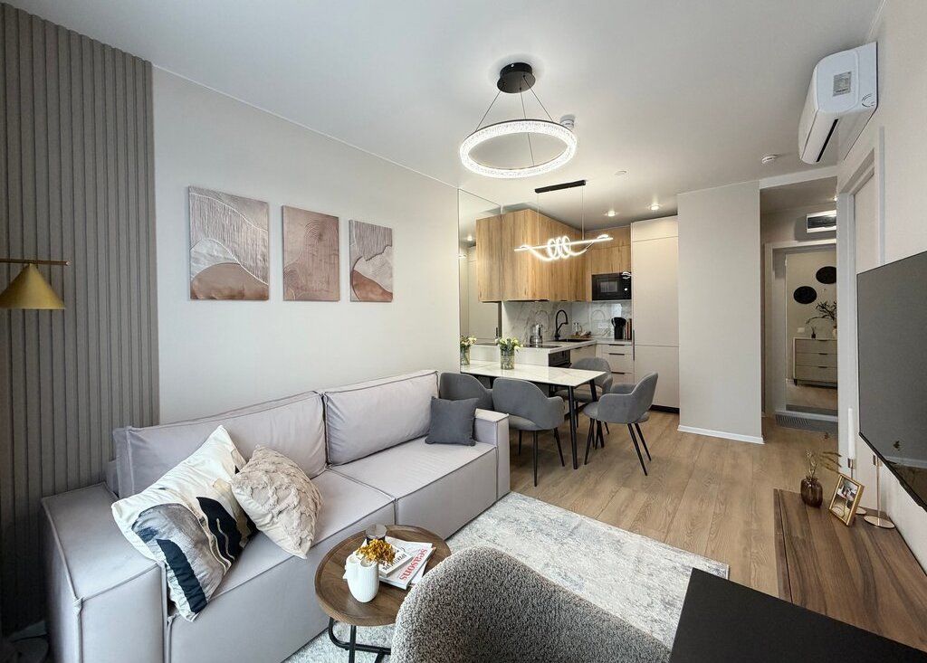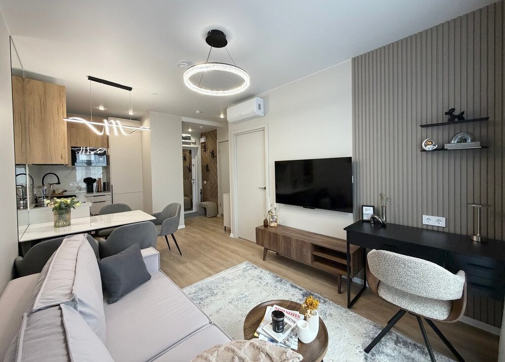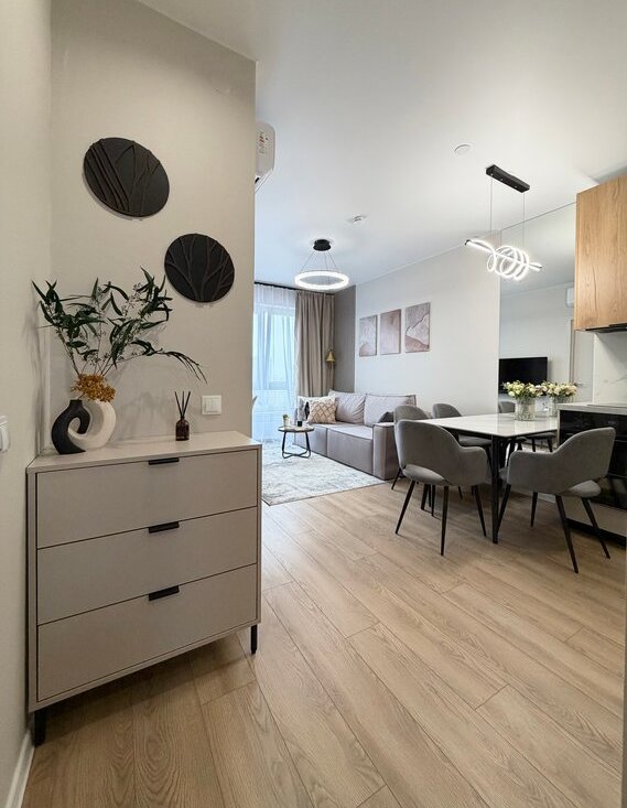 Дизайнерский ремонт новый, с атмосферой уюта и комфорта. Полностью меблирована и укомплектована техникой, все новое. Заходи и живи. Отличная планировка. Общая площадь 32 кв м.