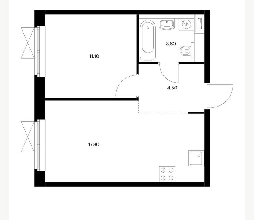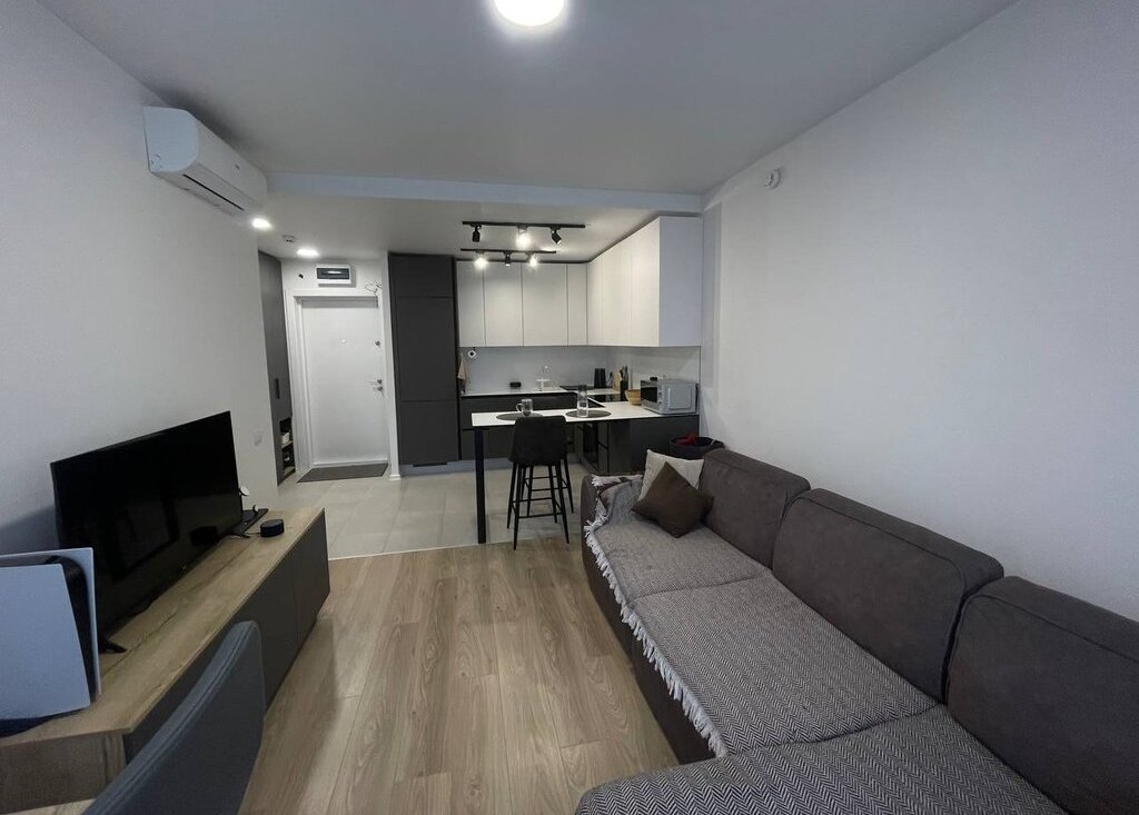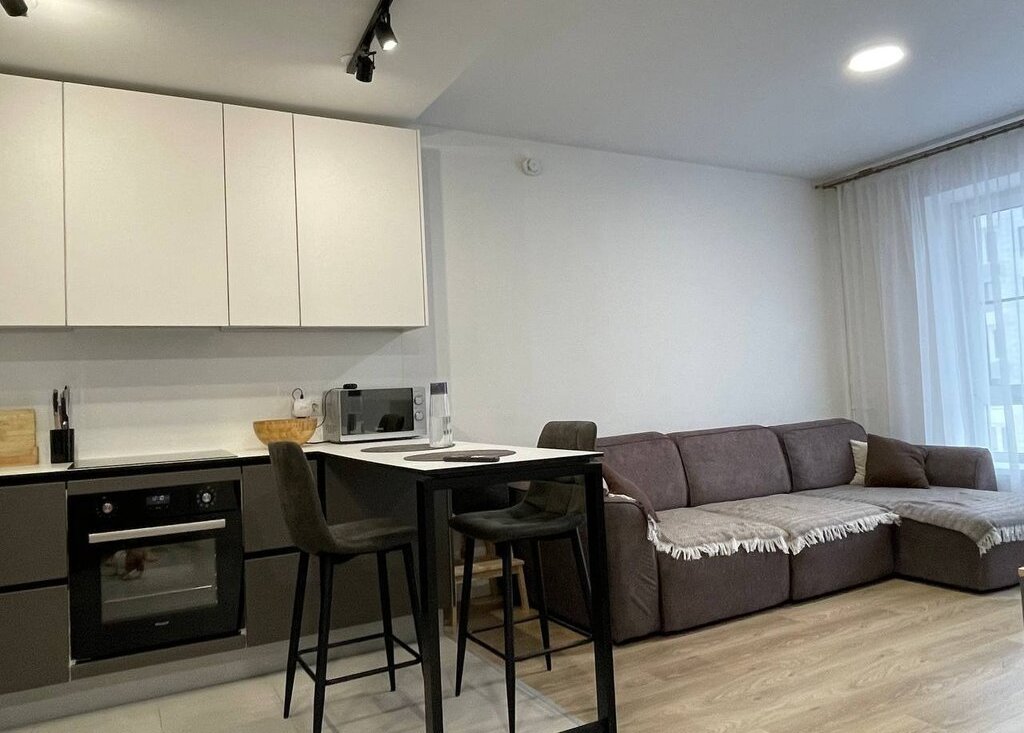 Продается удобная евро-двушка: совмещенная кухня-гостиная, спальня, совмещенный санузел, прихожая.